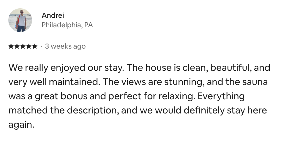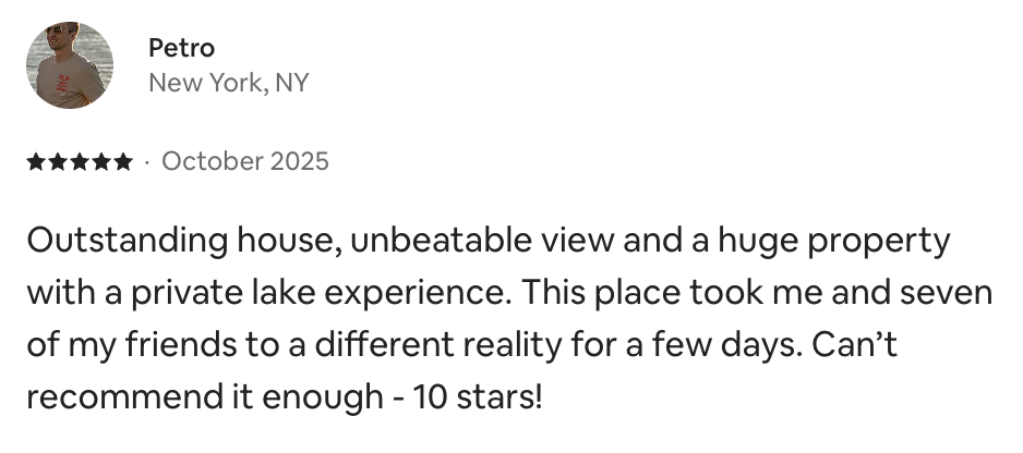 Private luxury home for up to 10 guests. Complete with sauna, hot tub, fire pit, pond, and sweeping mountain views.